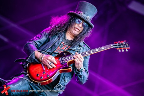 „Boulevard Of Broken Hearts“ mit seinem an SURVIVORs „Eye Of The Tiger“ erinnernden Intro lässt die Eifel endgültig erbeben, im Anschluss gibt es mit „Doctor Alibi“ einen weiteren Slash-Titel, der von Bassmann Todd Kerns ins Mikro geträllert wird. Nach „Mind Your Manners“ folgt mit „Driving Rain“ das nächste Highlight, gefolgt vom GUNS`N`ROSES Klassiker „Nightrain“, der am Ring mächtig abgefeiert wird. „You´re A Lie“ ist wiederum Slash / Kennedy Liedgut, während „World On Fire“ einem ausgedehnten Brent Fitz Schlagzeugsolo Raum gewährt. Slash lässt sich seinerseits nicht lumpen und zeigt durch ausgefeilte Soli auf seiner Gibson, warum er immer noch als einer der besten Rockgitarristen des Planeten gilt. „Anastasia“ beendet den grandiosen Auftritt einer trotz des teilweise widrigen Wetters bestens aufgelegten Mannschaft. Ein erstes Highlight im dicht gepackten Line-Up.