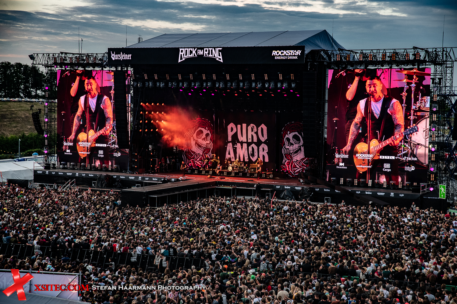 Drei Großbühnen, deren Aufbau drei Tages- und zwei Nachtschichten dauert und von 135 Bühnenbauern bewerkstelligt wird, mehr als 1500 Meter durchlaufende Lichttraversen, mehr als 52 Kilometer (!) Stromkabel, eine 400 Mann starke Festivalcrew, die sich um das Herrichten und die individuelle Gestaltung der Bühnen für die jeweiligen Acts kümmert, 750 Security-Mitarbeiter, ein Line-Up, das wie das Who-Is-Who der angesagtesten Bands der Szene klingt und eine Location, deren weltberühmte Streckenabschnitte „Hohe Acht“, „Schwalbenschwanz“, „Brünnchen“ und „Bergwerk“ nicht nur Motorsportfans in aller Welt geläufig sind, dazu mehr als 120.000 Besucher, die ein Festival der Extraklasse feiern: Das ist Rock am Ring 2022.