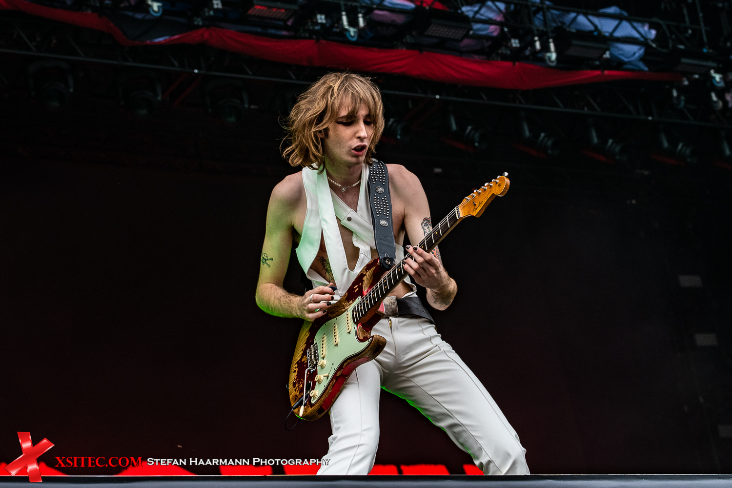 Während im Media-Center bereits die Nachricht durchsickert, dass bei GREEN DAY am späten Abend keine Fotografen zugelassen sind, schicken sich die Römer von MÅNESKIN an, kurzerhand den Headliner-Slot für sich zu beanspruchen. Der Name MÅNESKIN stammt im Übrigen aus dem Dänischen und bedeutet Mondschein, was eine Reminiszenz an die Dänischen Wurzeln von Frontmann Damiano David darstellt. Die Band, die 2021 den Eurovision Song Contest für sich entscheiden konnte, liefert beste Unterhaltung voller Energie, die hier am Ring vor der UTOPIA-Stage für ausgelassene Party-Stimmung sorgt. So sieht das aus, wenn eine Band erfolgshungrig aus der Garderobe kommt. Nicht nur für mich das Highlight des ersten Tages.