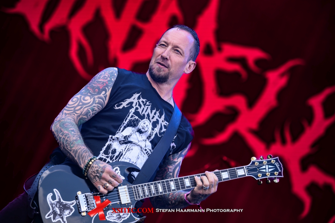 Nach diesem Abriss geht es hinüber zur MANDORA-Stage. Einige Kollegen hatten gar nicht auf dem Schirm, wer dort mit seinem Death-Metal Projekt auf der Bühne steht. ASINHELL ist für die meisten ein unbeschriebenes Blatt, beim Namen Michael Poulsen klingelt es dann allerdings: der VOLBEAT-Frontmann hatte nach Fertigstellung der aktuellen Scheibe noch genug Energie, ein paar Death-Metal-Riffs zu Papier zu bringen. Der Anruf bei ehemaligen Weggefährten führte