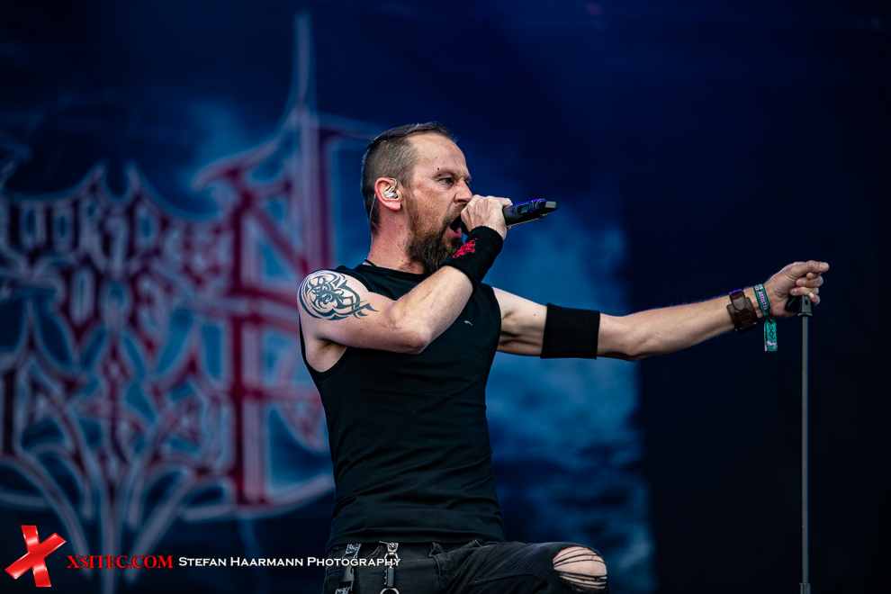 Bei den finnischen Folk-Metaller von ENSIFERUM geht die Party ohne Unterbrechung weiter. Überhaupt lässt sich festhalten, dass die Stimmung am heutigen Tag nach den Wetterkapriolen des Vortags, die offensichtlich hier etwas gedämpft hatten, ausgelassen und enthusiastisch ist.