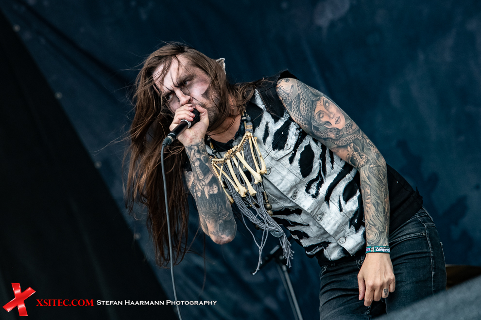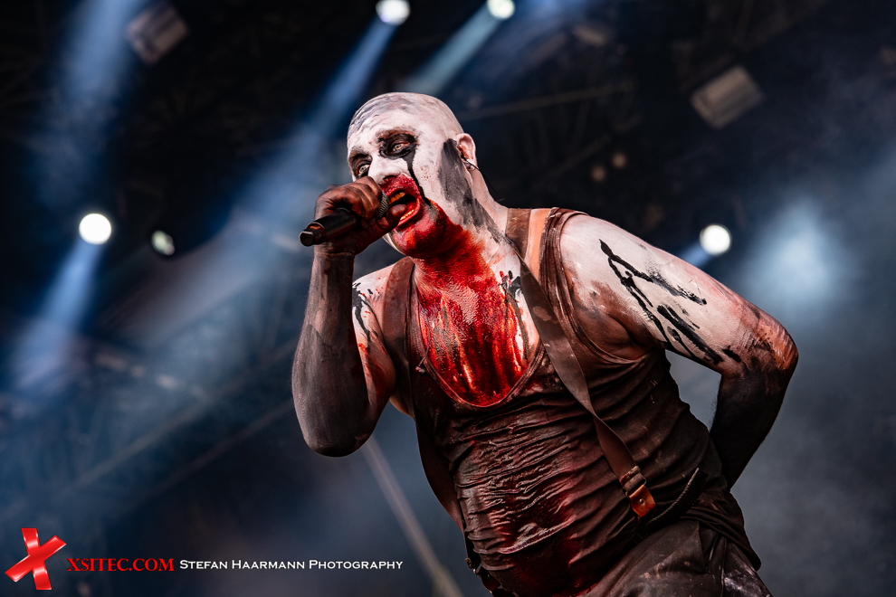 Etwas gemäßigter geht es dann bei PADDY AND THE RATS zu, deren humoriger Folk Rock eigentlich besser zu späterer Stunde gepasst hätte und mit Sicherheit einen späteren Slot verdient gehabt hätte. Kurz darauf fließt dann bei OST+FRONT das Theaterblut in Strömen. Die Berliner haben hier quasi ein Heimspiel und neben den vielen Crowdsurfern während des Gigs zeigt insbesondere der Andrang im Infield den Stellenwert der Band auf. Dass die Show zudem selbst für NDH- Verhältnisse außergewöhnlich ist, tut ein Übriges.
