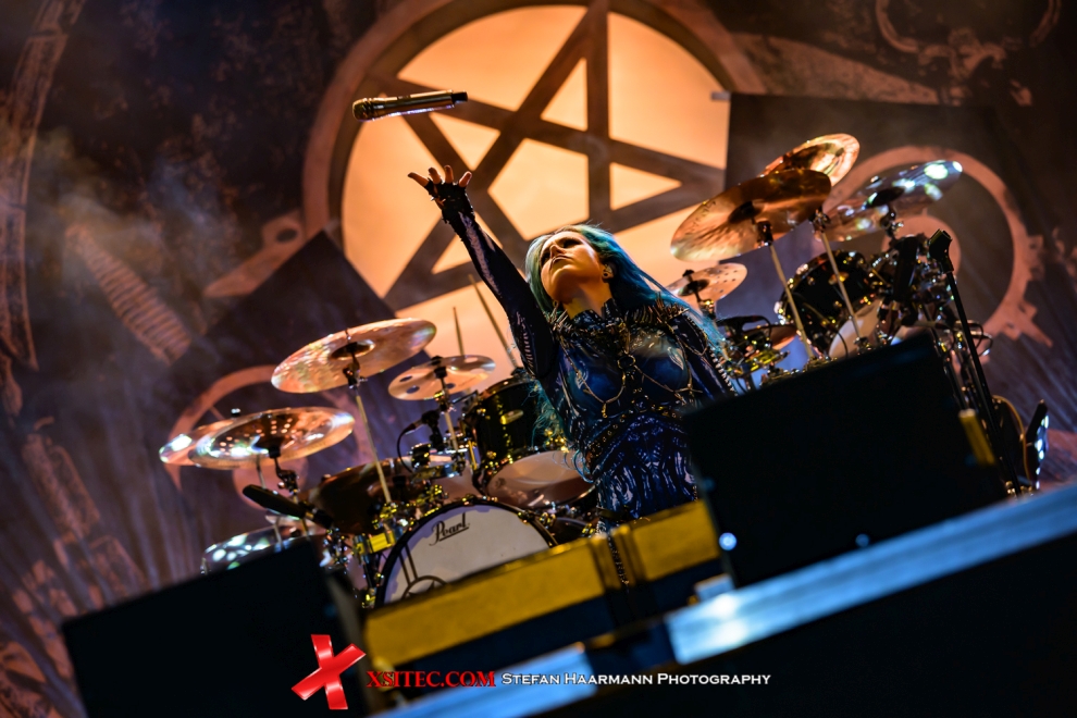 Danach ist es Zeit für den Headliner des Tages: ARCH ENEMY mit Alissa White-Gluz stehen auf dem Programm, die erst kürzlich bei Rock am Ring überzeugen konnten. Frontlady Alissa glänzt wie gewohnt mit mächtigen Growls und Sprüngen vom Schlagzeugpodest, während die beiden Gitarreros Jeff Loomis und Michael Amott den Songs mit ihren grandiosen Soli immer wieder ihren Stempel aufdrücken.