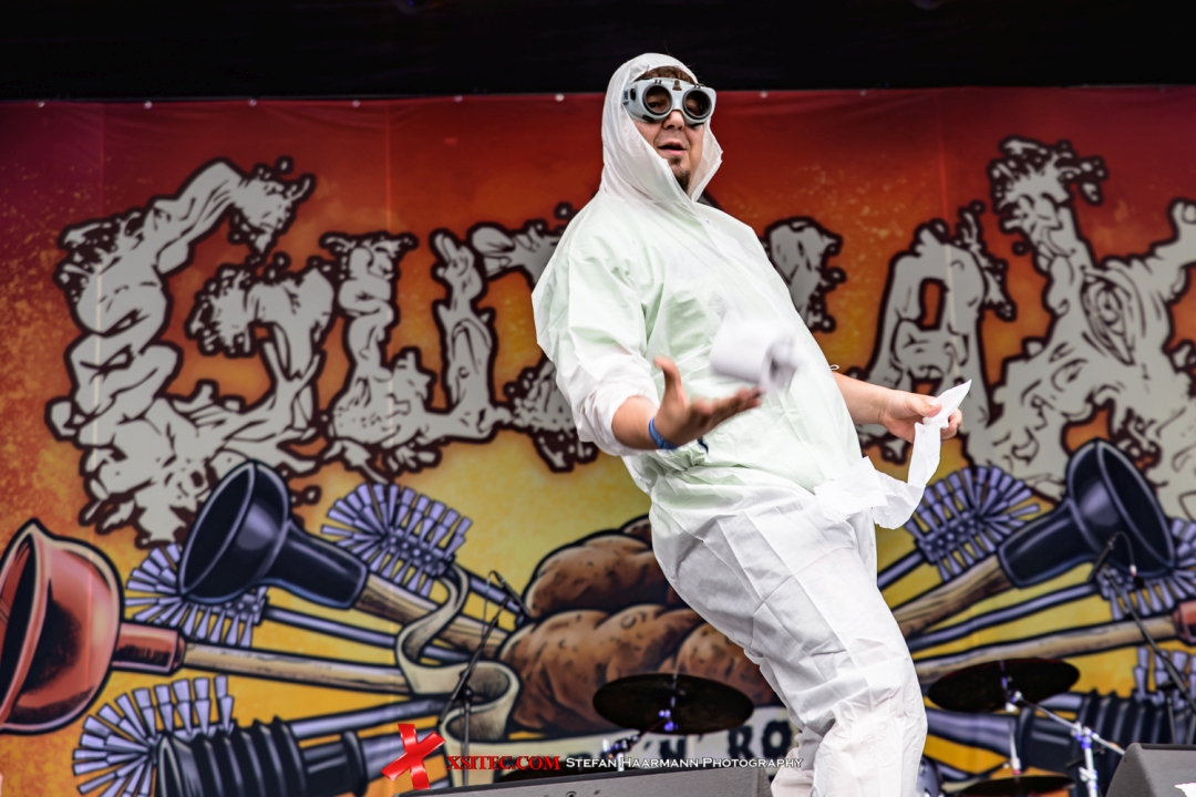 em -t mehr) ist ein Abführmittel, womit der Kreis sich wieder schließt. Na denn. Die Fans vor der Bühne haben sich das Outfit der Band zum Vorbild genommen: Ganzkörper-Kondome und Gasmasken dominieren die Szenerie, dazu gibt es Klopapier in allen Farbschattierungen, das wechselseitig von der Bühne ins Publikum und wieder zurück geschleudert wird. Großer Sport.