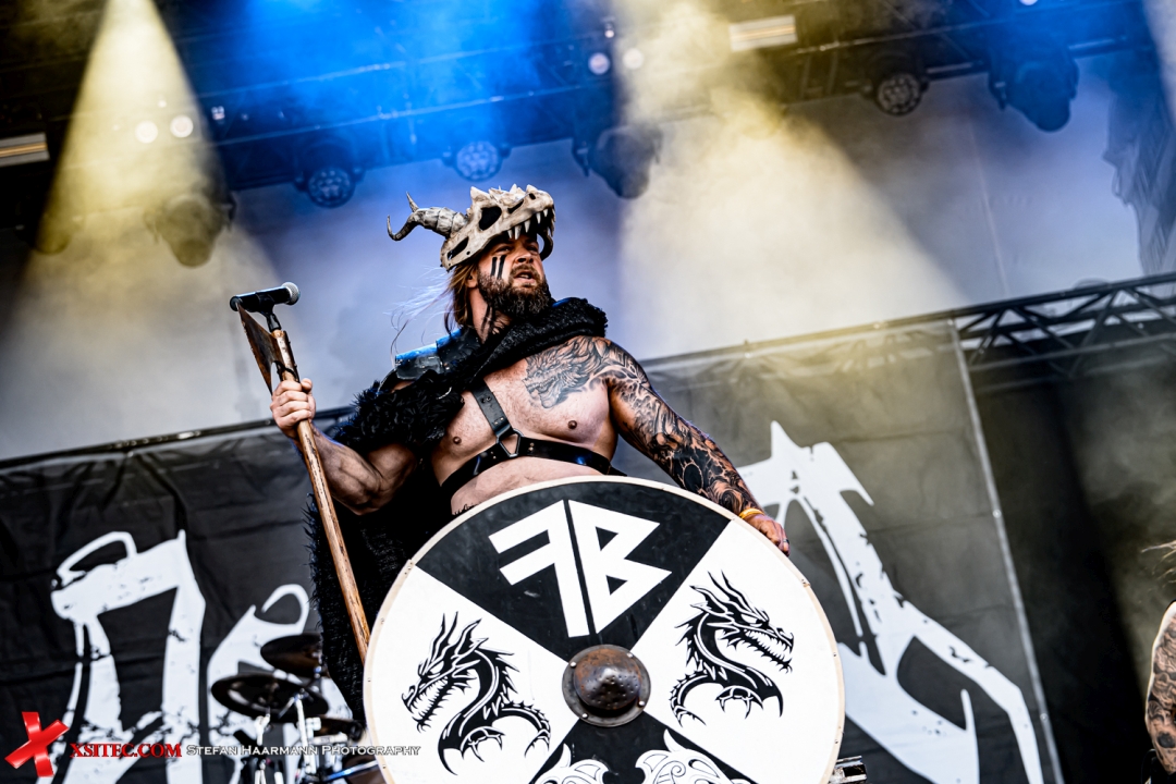 Mit ASENBLUT geht es anschließend in der Zeit deutlich zurück, denn die Mannen um Tetzel Schmidt haben sich das breite Feld nordischer Mythologie als ihr musikalisches Schlachtfeld erkoren, auch wenn es neuerdings des Öfteren auch Texte jenseits der Götterwelt gibt. Das Auftreten bleibt martialisch und Hühne Tetzel ist hier ganz offensichtlich in seinem Element.