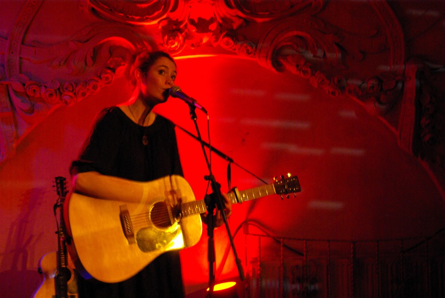 Still und leise wie ein scheues Waldgeschöpf betritt Rachel Sermanni nach kurzer Pause die kleine Bühne. Die zierliche Schottin wirkt im ersten Moment ein wenig verloren, doch schon nach den ersten Tönen legt sich dieser Eindruck und die Stimme der gerade einmal zwanzig Jahre alten Folksängerin schwebt facettenreich und raumgreifend durch die „magical cave“, wie sie die Prinzenbar selbst bezeichnet. Eine Band benötigt die Dame nicht, denn ihr Gitarrenspiel orchestriert die elegisch-zerbrechlichen Songwriter-Stücke wirklich grandios. Obwohl über den meisten Songs ein wehmütiger Schleier liegt, gelingt es Sermanni mit größter Sicherheit, Kitsch und Kleister zu vermeiden. Gänsehautmomente gibt es an diesem Abend zuhauf: Die Schottin lässt ihren Gesang mühelos zwischen herben, soultriefenden Tiefen und elfengleicher Kopfstimme wandern. Auf viel Songmaterial kann sie noch nicht zurückgreifen, weswegen sie hauptsächlich Songs von ihrem Debütalbum „Under Mountains“ zum Besten gibt.