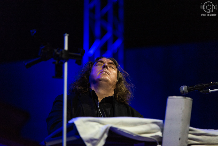 Ok, genug der Spannung. Thorsten Quaeschning, der musikalische Erbe von Edgar Froese und aktuelle Kopf der Elektronikformation Tangerine Dream läutete den Abend um 20:00 Uhr mit den Synthesizerklängen seiner eigenen Kompositionen ein. Zumindest konnte ich als in diesem Genre eher Ungeübter keine Stücke von Tangerine Dream heraushören. Für die Gäste war das sicher eine Herausforderung, da die Musik von Quaeschning und SAGA kaum unterschiedlicher sein könnten. Aber gut, man wächst an seinen Aufgaben. Nach ca. 40 Minuten war dann aber auch schon wieder Schluss und der Umbau begann.