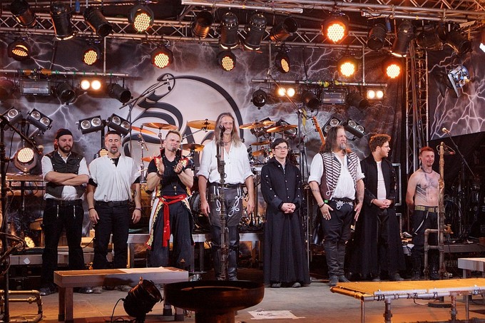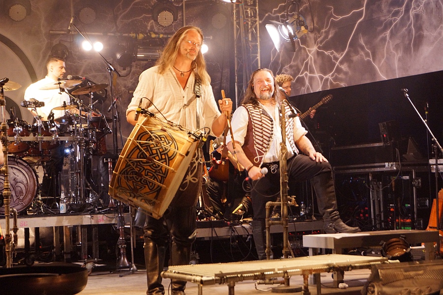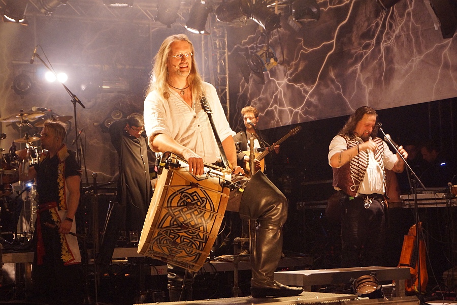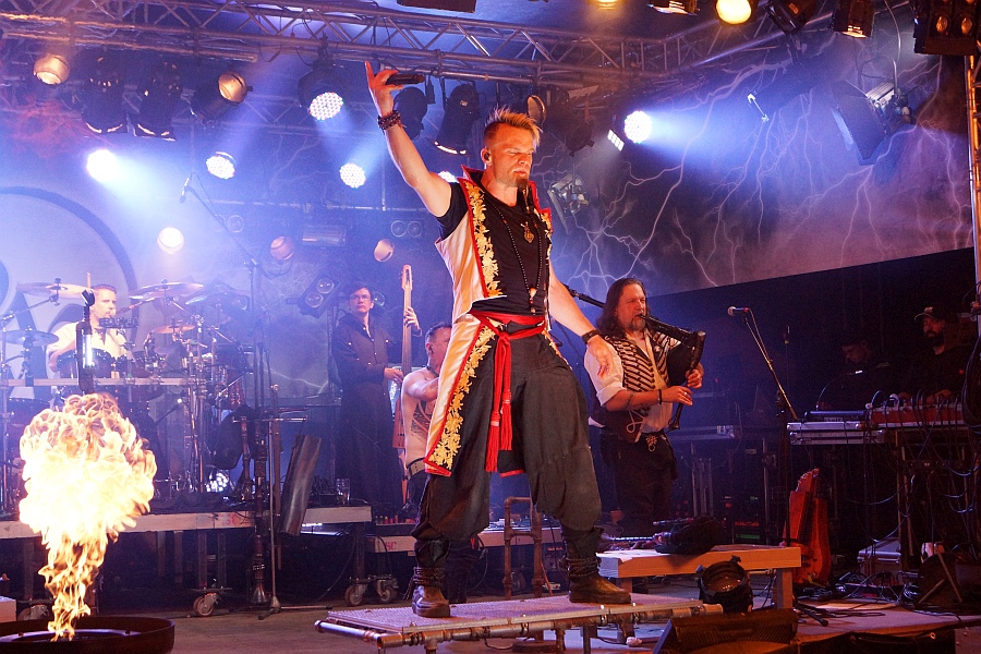 Um 22.00 Uhr fällt der Startschuss für den rockigeren Teil der Vorstellung und mit „Der Letzte Spielmann“ vom 2011er Album „Sturm Aufs Paradies“ beginnt eine Zeitreise durch achtzehn Jahre Bandgeschichte, die keinen Hit auslässt.