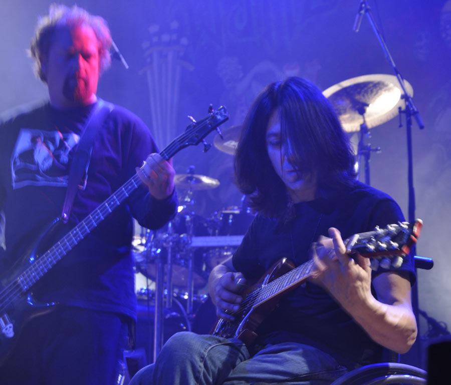 Im Vergleich gerät der Auftritt von PSYCHOTIC WALTZ zu einem Quantensprung, und zwar in mehrfacher Hinsicht: Nicht nur, dass die Herren um Devon Graves ihren Vorgruppen eine Lehre erteilen - nein, mit einem Schlag sieht man auch alle höher-schneller-weiter-Truppen zu Staub verfallen, die sich am Rande des Genres eingenistet haben und musikalische Klasse für sich beanspruchen wollen. Hier ist sie wieder, die alte Schule des Progressive Metal, für dessen Kreativität sich andere die Daumen abscheiden und trotz fehlender Superlative in puncto Geschwindigkeit auch den Rest ihrer Gliedmaßen brechen würden. Mit Ur-Basser Ward Evans war es klar, dass "Bleeding" kaum bedacht werden sollte. "Morbid" allein muss es richten, doch bei verhältnismäßig kurzer Spielzeit sind keine Abstriche zu verzeichnen. Wir reden hier schließlich in erster Linie über "A Social Grace" und "Into the Everflow", Alben mit wie in Stein gemeißelten Songs, deren Highlights in dieser Position unmöglich alle dargeboten werden können. Dazu stellt Graves nach dem Gig eine Headlinertournee nebst neuem Album in Aussicht, was man ihm eingedenk seiner beseelten Performance und mit Hinblick auf den sichtlichen Spaß der geschlossenen Mannschaft sofort abkauft. Ähnlich wie bei DEATH ANGEL musste diese Band wohl eine jahrelange "Reinigung" durchlaufen, um endlich losgelöst von personellen und geschäftlichen Zwängen einfach nur ohne Erwartungsdruck ihrer Musik frönen zu können. Der Altfan dankt es, und die nicht wenigen Neuentdecker kaufen hoffentlich tütenweise die Alben, die ihrerzeit nur einer kleinen Traube Eingeschworener vorbehalten waren. So hippiesk speziell das geniale Gitarrenduo Rock/McAlpin beziehungsweise Graves anmuten, so visionär war und ist der Sound von PSYCHOTIC WALTZ. Obwohl der Rezensent sie zum ersten Mal sieht, scheint es, als seien sie nie in den vorübergehenden Ruhestand getreten. Evans zupft stoisch, die Gitarristen versinken in ihre Akkorde und Leads, und Devon mimt den Zeremonienmeister wie Ian Anderson mit metallischen Genen. Ein Fest!Kult sind NEVERMORE schon lange nicht mehr, waren es auch vielleicht bestenfalls für die ersten zwei, drei Alben, zu deren Zeit echter Metal vorübergehend ein Schattendasein fristete. In jedem Fall aber stellt sich mittlerweile leichte Übersättigung ein, zumal "The Obsidian Conspiracy" als schwacher Abglanz der beiden vorangegangenen Scheiben beziehungsweise von Fronter Danes Soloalbum nur mehr vom gleichen Alten auf niedrigerem Niveau feilbietet. Die Band verblasst zusehends und auch mit Zweitgitarrist Attila, der gute Mine zum bösen Spiel von Obergrantler Warrel macht. Wenn dieser Mensch heute wirklich drogenfrei ist, dann wäre es mit Verlaub zumindest in künstlerischer Hinsicht besser gewesen, er hätte sich weiterhin seinen Ausschweifungen hingegeben. Singen wie auf dem Debüt,