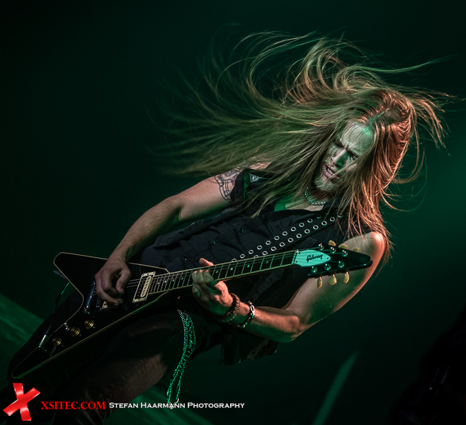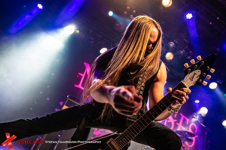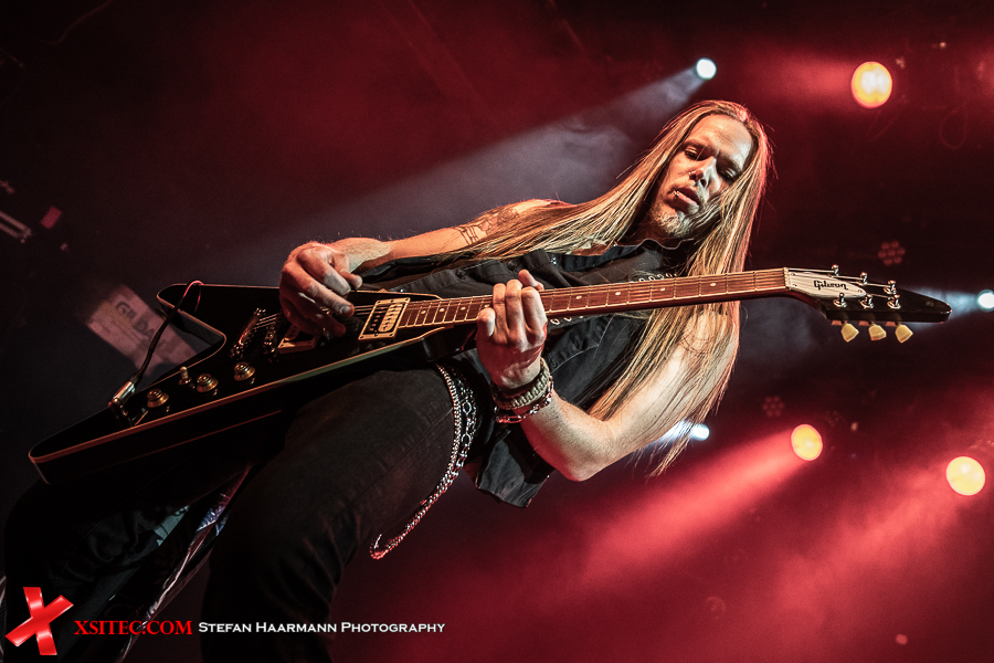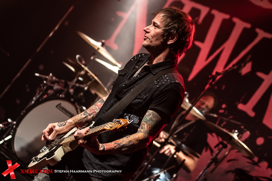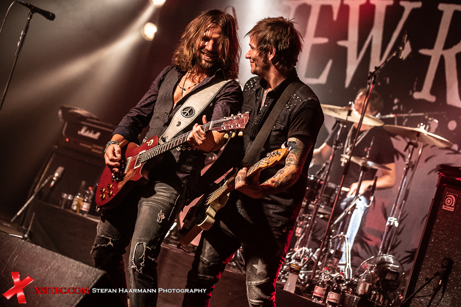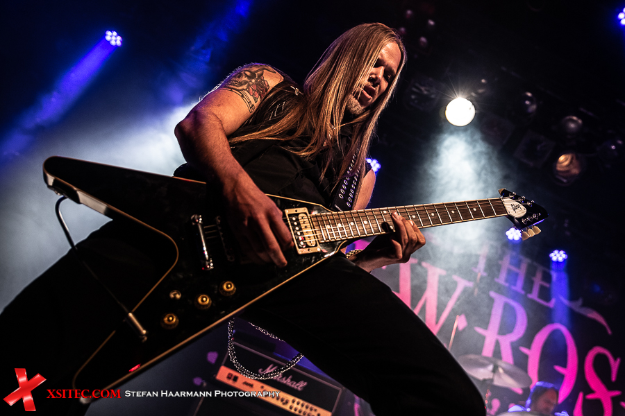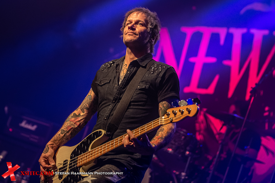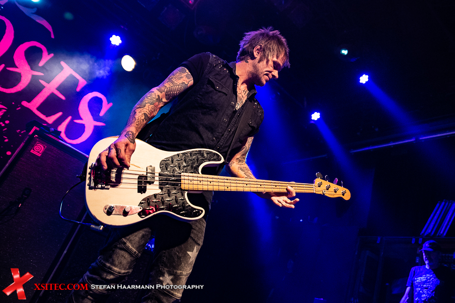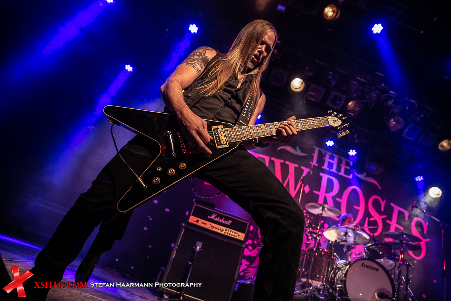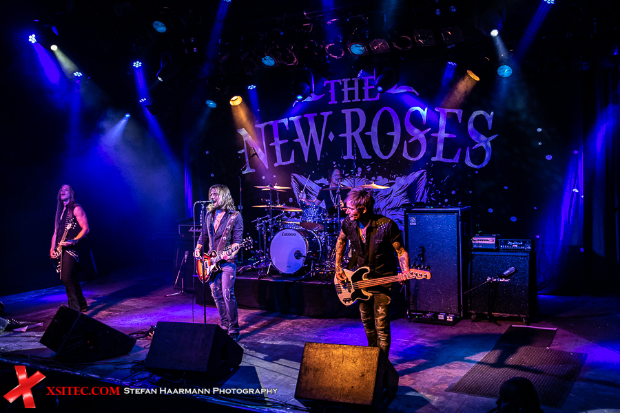 Dann aber ist es Zeit und THE NEW ROSES betreten die Bühne der Zeche. Los geht’s mit dem Titel-Song des aktuellen Albums „Nothing But Wild“. Schon die ersten Takte zeigen den Spielwitz der Band und auch „Unknown Territory“ kommt brachial aus der PA. Hardy am Bass muss sich aufgrund des vielstimmigen Chors in Bochum ein ums andere Mal ein Lächeln verkneifen und traktiert seinen Viersaiter umso vehementer. Nach „Life Ain´t Easy“ gibt es mit „Dancing On A Razor Blade“ vom 2017er Album „One More For The Road“ einen weiteren Killer, der neben einer hartrockenden Strophe über einen stadiontauglichen Chorus verfügt. Ganz nebenbei glänzt Poser-König Norman Bites immer wieder mit grandiosen Soli, die er seiner Gibson Flying V entlockt.