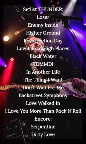 Love Walked In“ und „I Love You More Than Rock´N´Rollbeschließen das reguläre Set, aber die Bochumer Fans lassen THUNDER natürlich noch nicht in den Nightliner entschwinden. Nach minutenlangen Ovationen gibt es mit „Serpentine“ und „Dirty Love“ den krönenden Abschluss eines fantastischen Konzerts.
