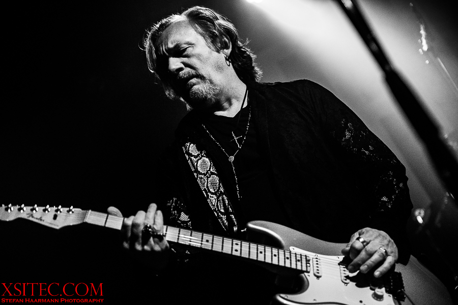 Luke Morley, kreativer Kopf THUNDERs, aus dessen Feder alle Hits der Band stammen, zieht am linken Bühnenrand alle Register seines Könnens und zaubert immer wieder Soli der absoluten Spitzenklasse aus den diversen Sechssaitern, die fleißige Helfer fast nach jedem Song an sich nehmen und wieder korrekt stimmen.
