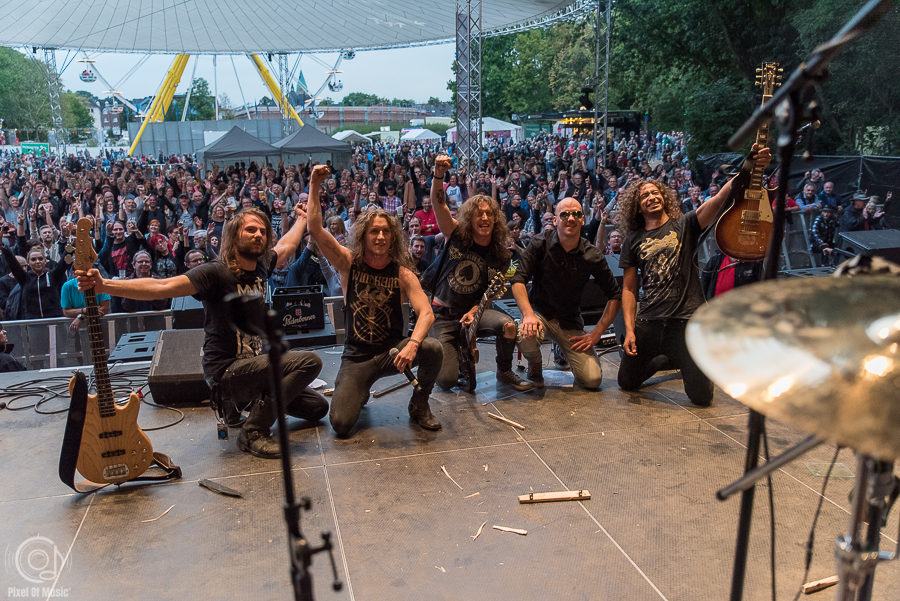 Und genau diese Marschrichtung haben die fünf Recklinghäuser auch in Waltrop verfolgt. Auf der Open Air Bühne am Riesenrad haben die Brüder Kovacs und ihre drei Mitstreiter ein Stimmungsfeuerwerk abgebrannt, was seinesgleichen sucht. Ein energiegeladener Johnny K. tobte wie ein Derwisch über die Bühne und zeigte in einer guten Stunde eine körperliche Leistung, die die meisten von uns nicht in einer Woche ableisten.