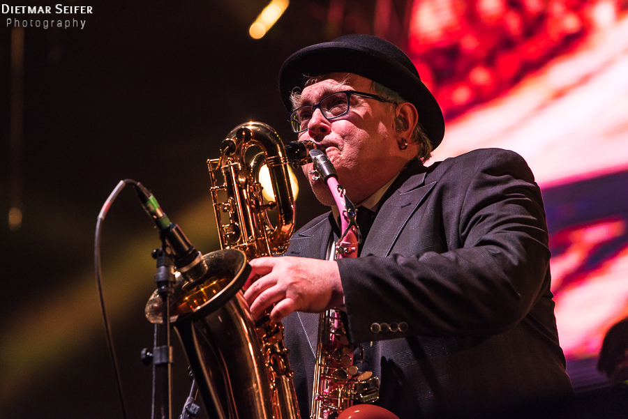 Das Klangbild war sehr nah am Original und ließ den Eindruck entstehen, tatsächlich auf einem Pink Floyd Konzert zu sein. Auch die Lightshow konnte sich sehen lassen. Darüber hinaus hatten auch noch drei riesige aufblasbare Figuren einen Auftritt. So war bei „Another Brick In The Wall“ am rechten Bühnenrand ein riesiger Lehrer zu sehen und bei „Pigs“ auf der linken Seite ein riesiges schwebendes Schwein mit rotglühenden Augen. Zwischendurch hopste dann das große rosafarbene Känguru in der Bühnenmitte. Alles in Allem eine sehr coole Bühnenpräsenz.