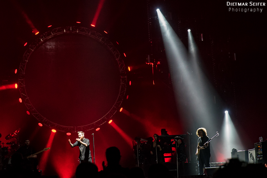 Das Konzert begann relativ pünktlich um kurz nach 20:00 Uhr mit „Obscured By Clouds“ und ein paar Schattenspielen auf einem vor der Bühne hängenden Gazevorhang. Ein Startsetup, was mittlerweile so einige Bands benutzen.