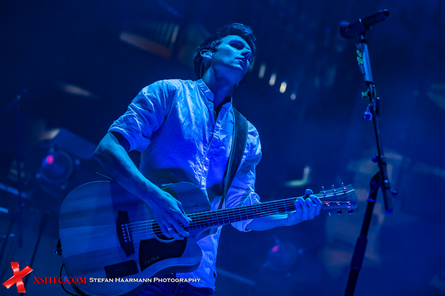Als Auftakt dieses denkwürdigen Abends haben VERSENGOLD „Auf in den Wind“ gewählt. Die Bühne ist in ein tiefes Blau gehüllt, Nebelschwaden umwabern die Musiker, dazu sorgt der eindringliche Text, der die Geschichte eines Schiffbrüchigen, der in den Tiefen des Meeres seinen Tod findet erzählt, für die ersten Gänsehautmomente des Konzerts, denen noch zahlreiche weitere folgen sollen. Überhaupt beherrscht zunächst eine tiefe Melancholie die Szenerie, denn wo in einem „normalen“ VERSENGOLD Konzert die Party-Songs der Band abgefeiert werden, gibt es traditionell auf der Nacht der Balladen epische Geschichten zwischen Leben, Liebe und Tod.