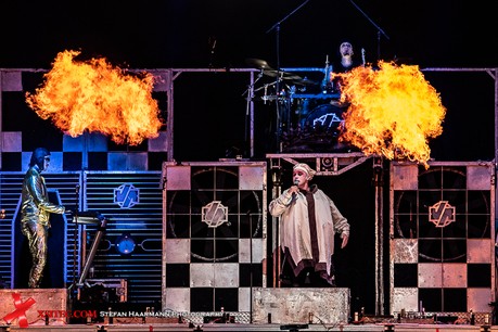 „Wiener Blut“ und „Haifisch“ rocken ebenso zwingend wie „Radio“, einem der absoluten Publikumsfavoriten. Natürlich gibt es zu „Mein Herz brennt“ das entsprechende brennende Herz vom Zeremonienmeister der Pyrotechnik, dem an dieser Stelle einmal ein ganz besonderes Lob ausgesprochen werden soll. Die Choreografie passt wunderbar zur Show und rundet die perfekte Performance der Band sensationell ab. Chapeau!