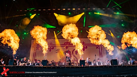 An GRAVE DIGGER kommt man in diesem Jahr nicht vorbei, zumal die Jungs um Mastermind Chris Boltendahl in diesem Jahr mit ihrer Jubiläumsshow unterwegs sind. Soll heißen: Viel Action aber wenig Platz auf der Bühne, denn zusätzlich zur normalen Besetzung sitzen und musizieren noch Dudelsackspieler und Trommler, die den Hits aus 40 Jahren Bandgeschichte wie „The Clans Will Rise Again“, „Excalibur“ oder „Rebellion (The Clans Are Marching ) stilgerecht neues Leben einhauchen. Ein ganz starker Auftritt und ein weiteres Highlight an diesem Tag.
