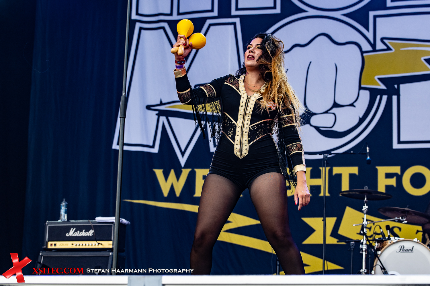 Bei der nächsten Band sind sich allerdings die meisten meiner Kollegen einig: da müssen wir hin. Gemeint sind hier THUNDERMOTHER, die ich bereits wenige Tage zuvor auf dem ROCKHARZ begutachten konnte und die hier selbstverständlich auch wieder auch meiner Liste stehen. Auch wenn der Begriff Band der Stunde abgedroschen erscheinen mag: die Damen um Frontlady Guernica Mancini beweisen erneut ihr tolles Potential und präsentieren im Laufe der Show Titel ihres neuen Longplayers „Black And Gold“, die noch ein wenig stärker erscheinen als die bisher bekannten Tracks.