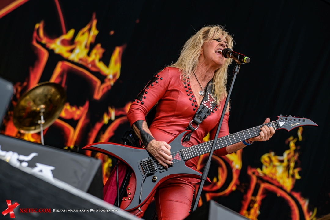 LITA FORD nicht als Ikone zu bezeichnen, kommt schon fast einer Majestätsbeleidigung gleich. Die frühere RUNAWAYS-Gitarristin punktet mit Soloklassikern und souveräner Bühnenpräsenz, die immer noch dazu angetan ist, die Fans in ihren Bann zu ziehen. „Kiss Me Deadly“ beweist, dass Hair-Metal-Hymnen selbst im norddeutschen Morast strahlen, zudem gibt es mit ihrem Ohrwurm „Close My Eyes Forever“ einen weiteren Gänsehautmoment, denn dieser Song wird selbstredend dem kürzlich verstorbenen OZZY OSBOURNE gewidmet. Dass hier vor der Bühne einige Fans Tränen in den Augen haben, ist trotz des immerwährenden Nieselregens deutlich zu erkennen.