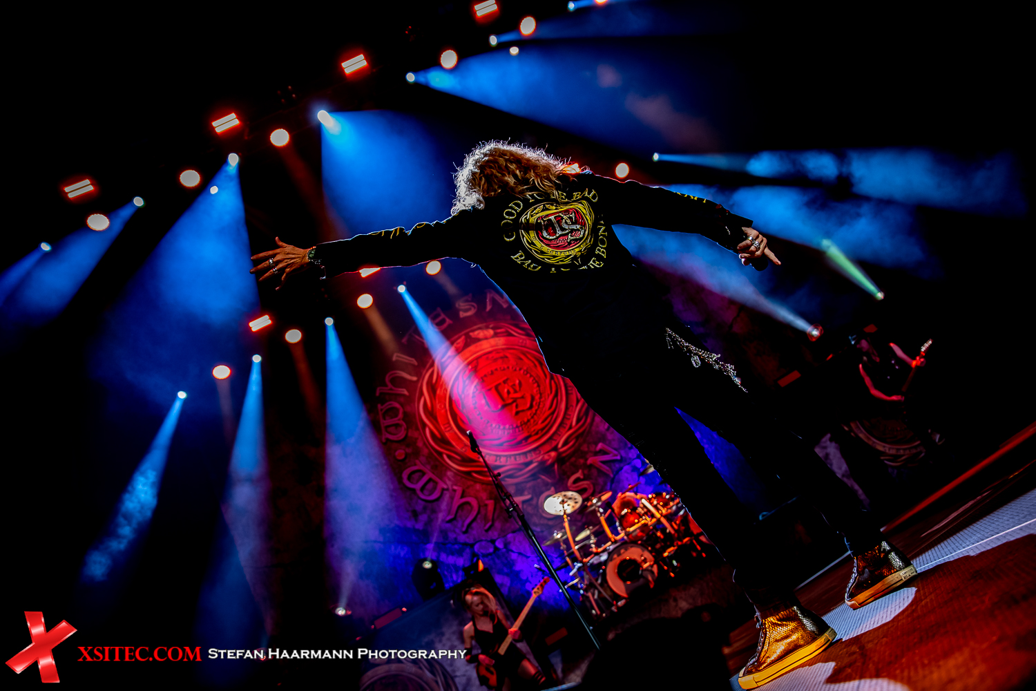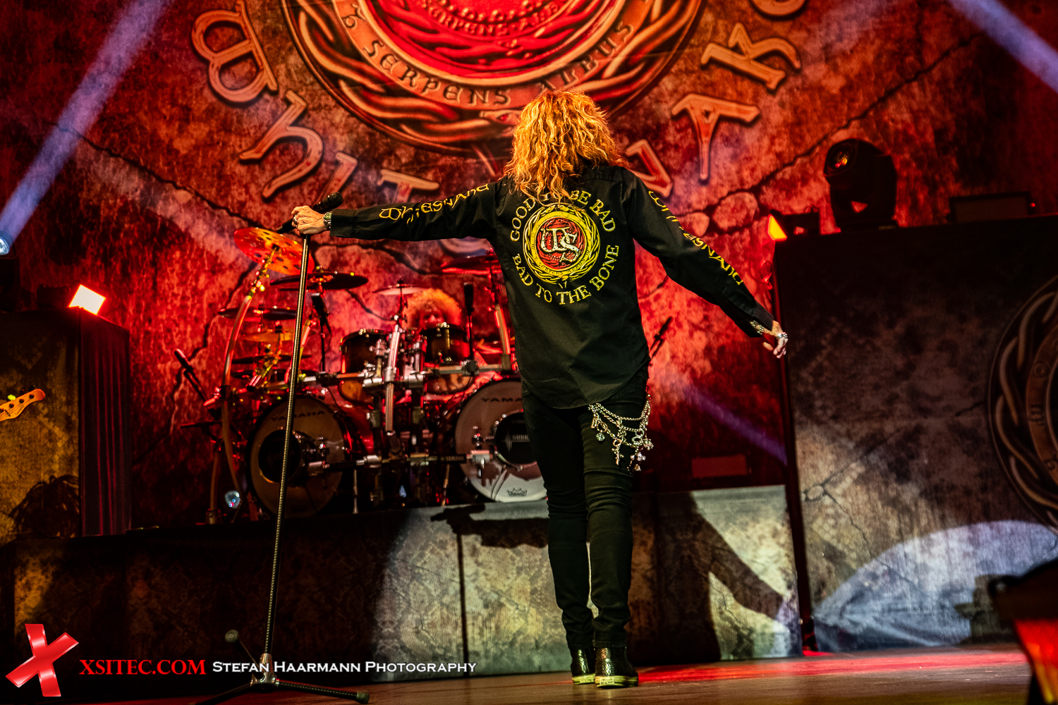 Sichtlich gut gelaunt und bestens in Form präsentiert sich der mittlerweile 70 Jährige, der nichts von seiner gewinnenden Aura verloren hat. Eigentlich reicht ein kleines Blinzeln, ein schelmisches Lächeln und das Schwingen des Mikrofonständers aus, die Masse in seinen Bann zu ziehen. Passend zum Song trägt Coverdale ein Hemd mit WHITESNAKE-Logo und der Aufschrift: „It´s good to be bad – bad to the bone“, eine Aussage, die man ihm aufgrund seiner sympatischen Bühnenpräsenz nicht wirklich abnimmt.